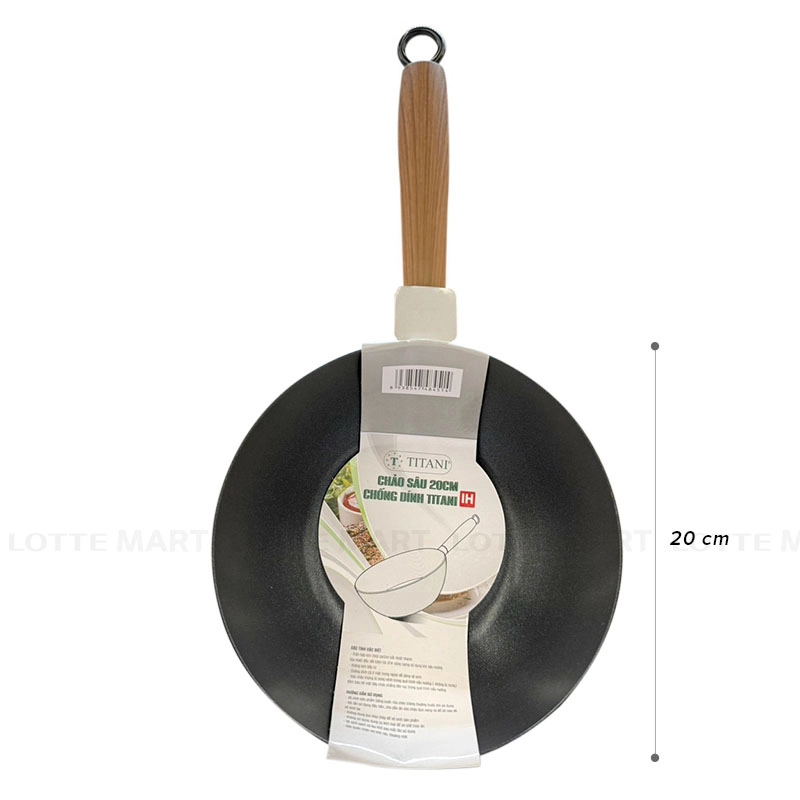 Chảo Sâu Chống Dính Đáy Từ Titani với thân chảo được làm hợp kim thép carbon, đồng thời được phủ 5 lớp chống dính (bên trong 3 lớp, bên ngoài 2 lớp).