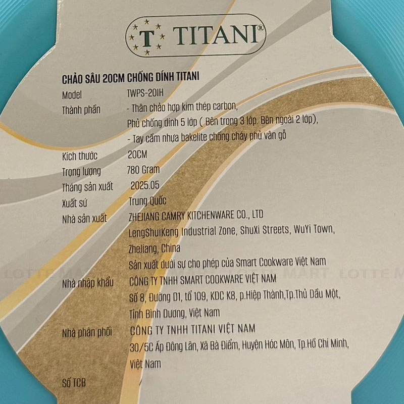 Chảo Sâu Chống Dính Đáy Từ Titani TWPS-20IH Size 20cm (Giao Màu Ngẫu Nhiên)