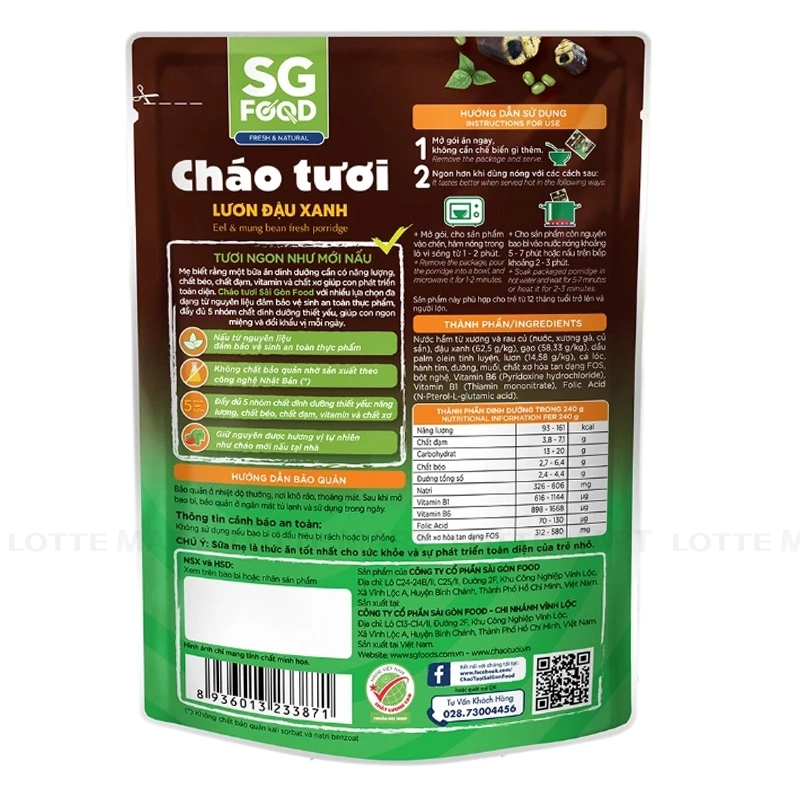 Cháo Tươi Baby Lươn Đậu Xanh SG Food Gói 240G