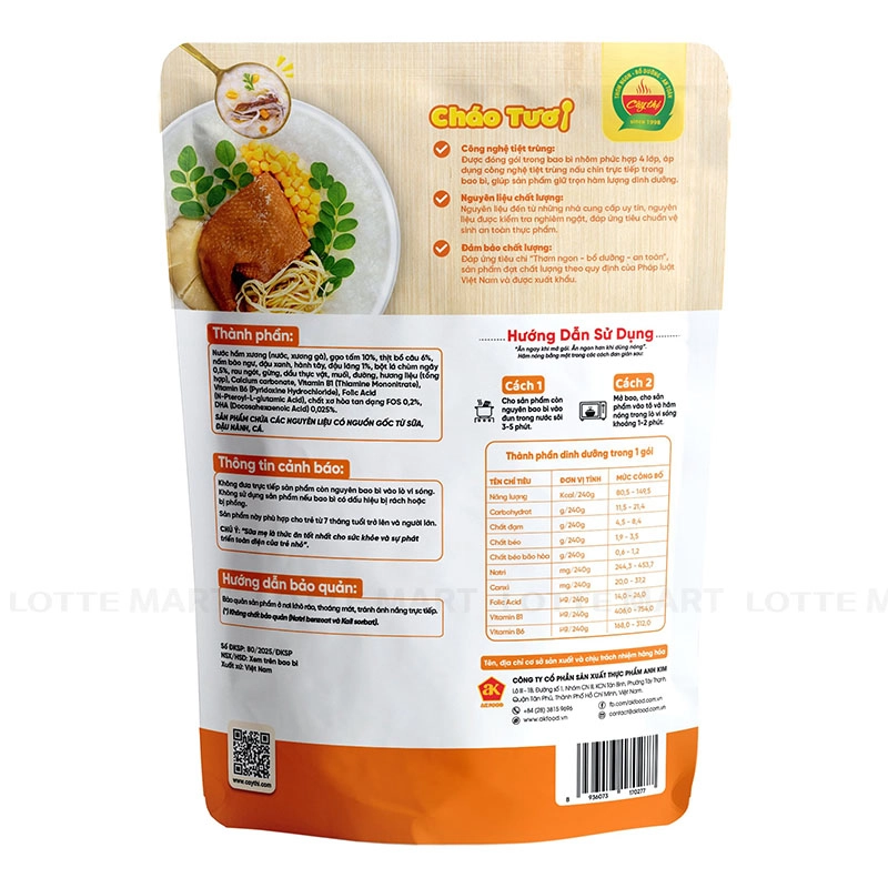 Là một bữa ăn dinh dưỡng, có thể là thức ăn bổ sung và được ăn thêm cùng với sữa mẹ, phù hợp cho bé từ 7 tháng tuổi và người lớn.