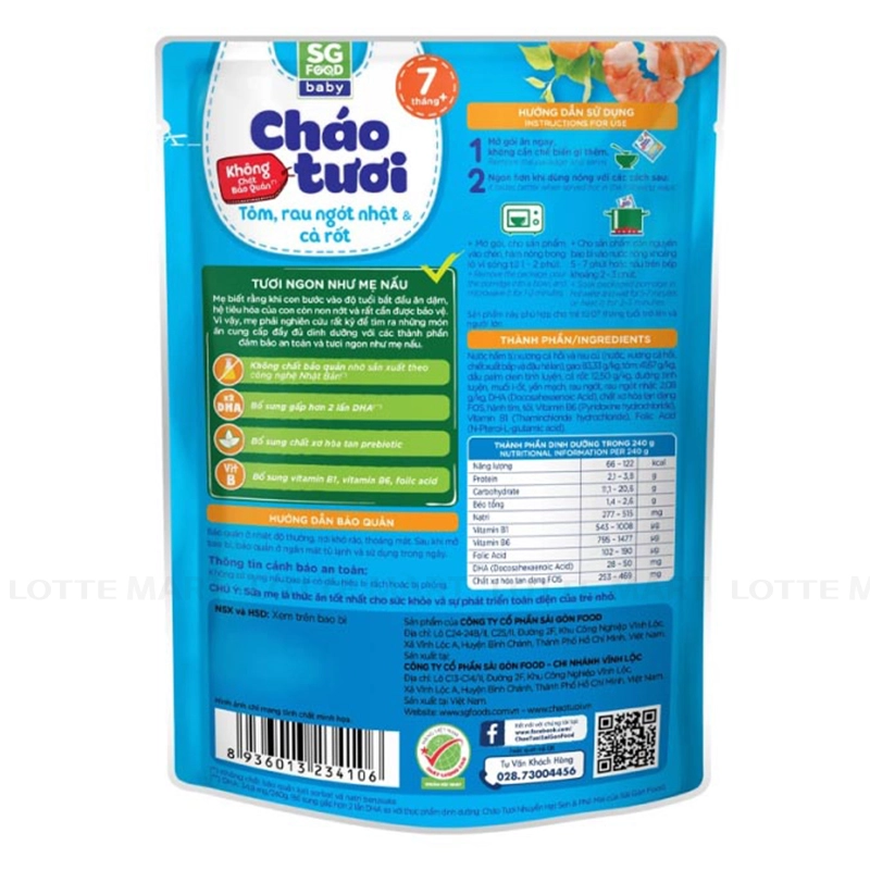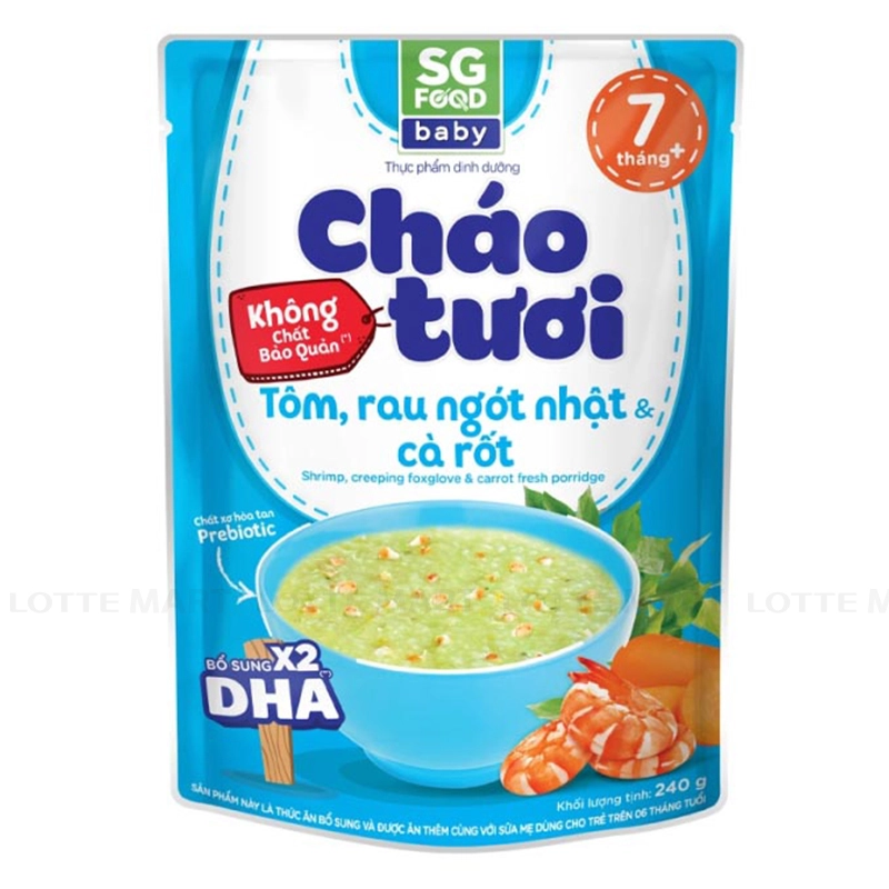 Cháo tươi SG Food vị tôm, rau ngót nhật và cà rốt SG Food 240G