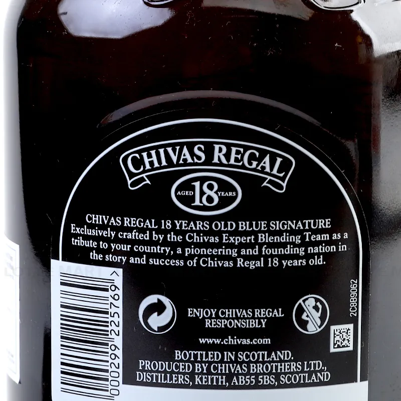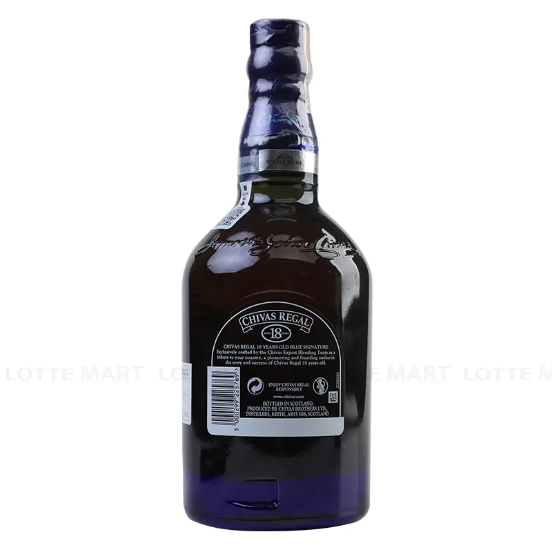 - Rượu Blended Whisky Chivas 18 Blue Signature 40% ABV Chai 700ml được tạo ra bởi bậc thầy pha chế rượu Chivas – Colin Scott. Dòng rượu này là một tuyệt tác của hãng Chivas. Với thiết kế chai và vỏ ngoài màu xanh dương nổi bật bắt mắt. Thêm vào đó trên vỏ hộp còn có chữ ký của nhà chế tác rượu tài hoa Colin Scott.