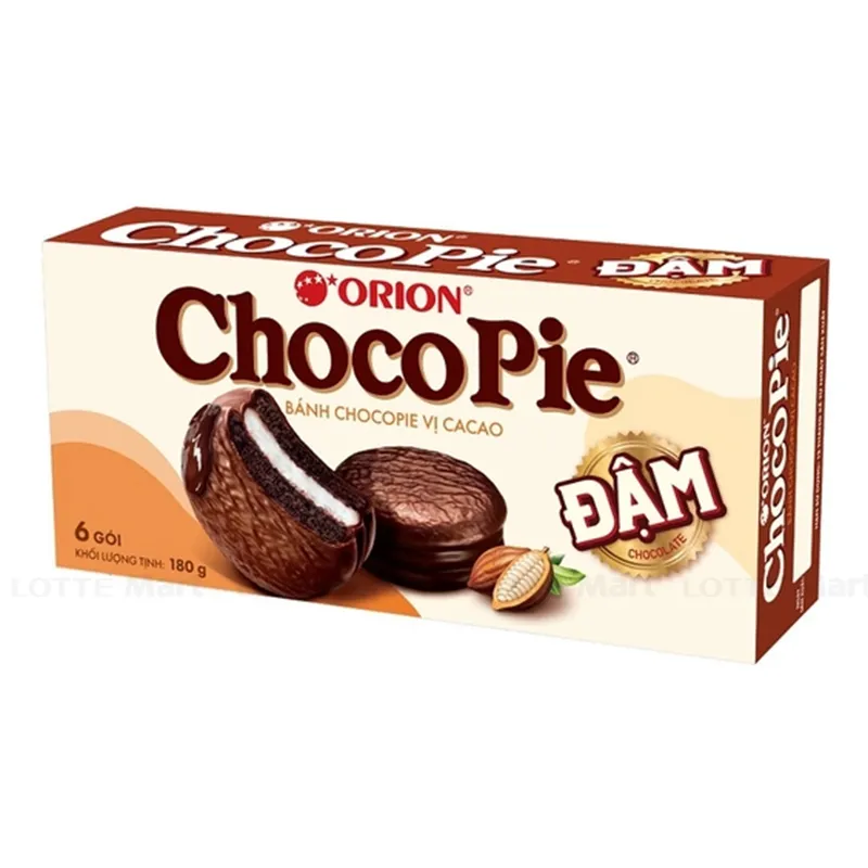 Bánh Chocopie Dark là sản phẩm bánh cao cấp của thương hiệu Orion từ lâu đã được đông đảo người tiêu dùng yêu thích. Sản phẩm làm từ các thành phần tự nhiên mang đến hương vị bánh thơm ngon, hấp dẫn. Khi thưởng thức, bạn sẽ được trải nghiệm hương vị tuyệt vời từ lớp bánh xốp mịn với sô cô la chảy ngọt ngào bên ngoài đến lớp nhân marshmallow dẻo dai hấp dẫn bên trong. Thành phần có trong bánh giúp bạn bổ sung các vitamin và khoáng chất cần thiết cho cơ thể mỗi ngày.