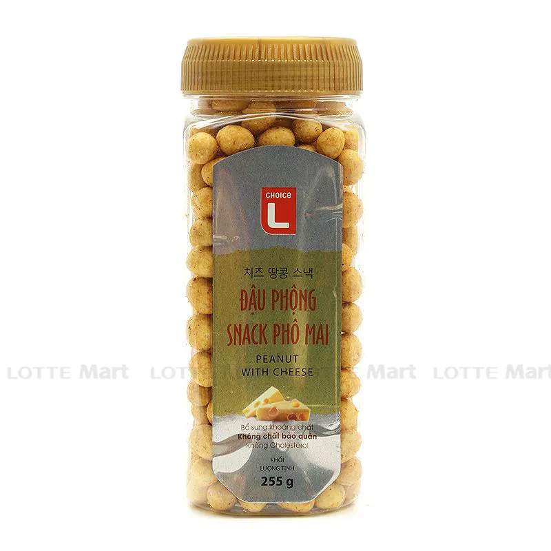 Đậu Phộng Snack Phô Mai Choice L có thành phần đậu phộng nguyên chất cùng phô mai, giữ nguyên vẹn được các dưỡng chất có trong hạt đậu và an toàn sức khỏe người dùng.