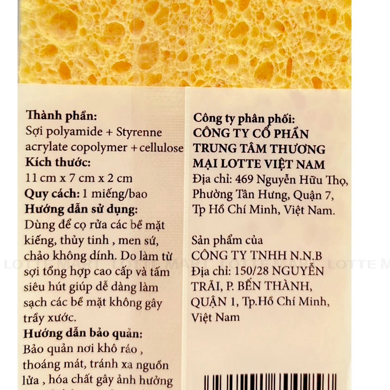 - Sản phẩm với cấu tạo 2 lớp bọt biển mềm mại cho khả năng hấp thụ nước tốt, trong khi lớp nhám giúp tẩy rửa hiệu quả mà không làm xước bề mặt.
