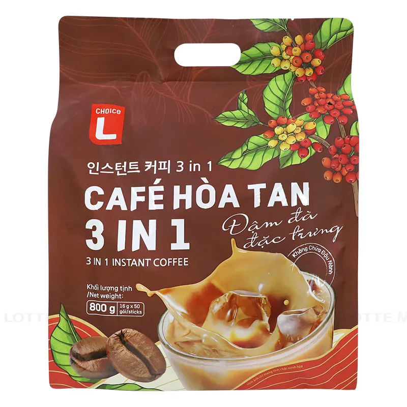 - Cà Phê 3IN1 Choice L sở hữu vị đắng quen thuộc và hương thơm tự nhiên vốn có, sản phẩm được tạo ra để mang đến cho người dùng một loại cà phê nguyên chất và thuần khiết. Bạn sẽ cảm nhận được cái hương vị đậm đà đặc trưng quen thuộc, vị đắng dịu nhẹ ban đầu và hậu vị cà phê đọng lại nơi cổ họng không thể nào quên.