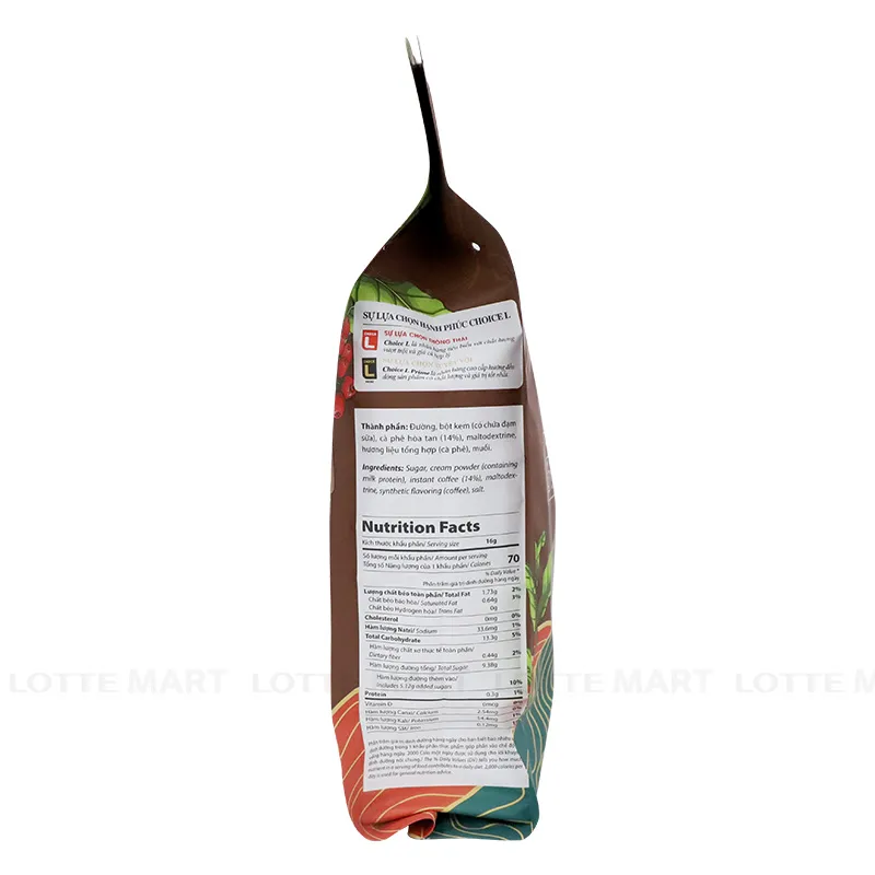 - Đường, bột kem (có chứa đạm sữa), cà phê hòa tan(14%), maltodextrine, hương liệu tổng hợp (cà phê), muối.
