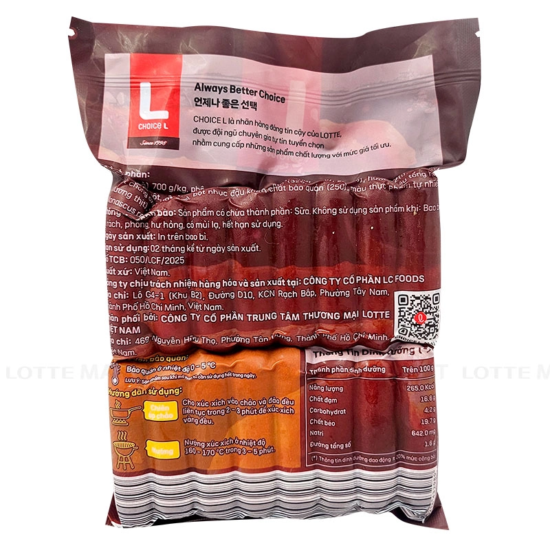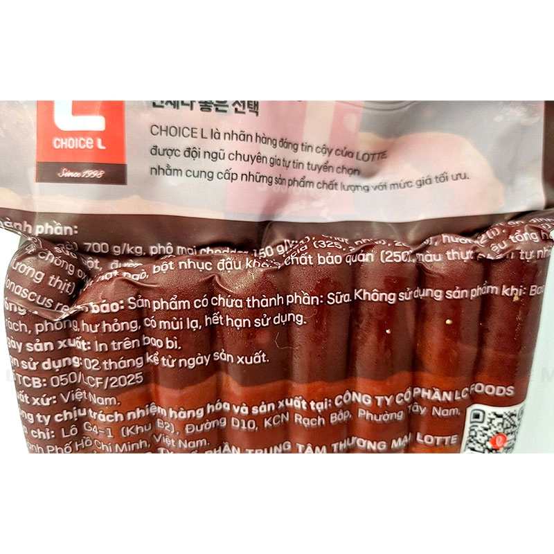 - Xúc Xích Phô Mai Choice L là sản phẩm xúc xích tiện lợi với phần nhân phô mai béo thơm bên trong, mang đến hương vị đậm đà và hấp dẫn cho bữa ăn nhanh trong ngày. Sản phẩm được chế biến từ thịt heo, thịt gà kết hợp cùng phô mai, tạo nên sự hòa quyện giữa vị thịt thơm mềm và lớp nhân phô mai tan nhẹ khi chế biến.