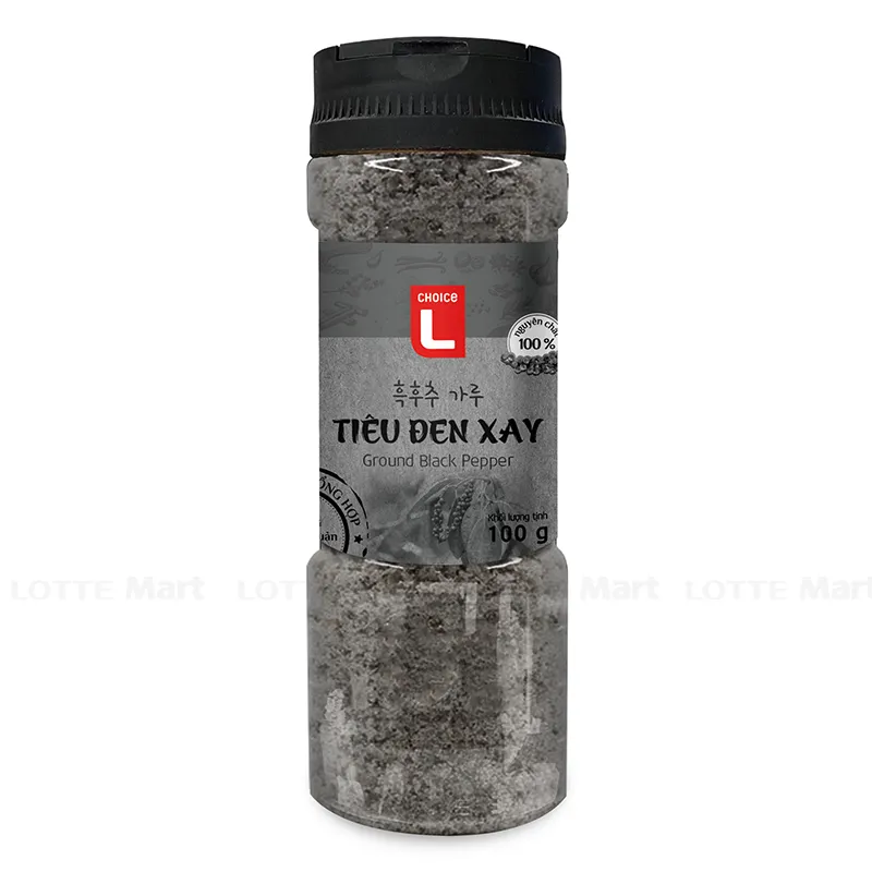 - Tiêu Đen Xay LOTTE Mart Lọ 100G được làm từ 100% nguyên liệu tiêu đen tự nhiên được chọn lọc kĩ càng mang lại mùi hương thơm ngon và hấp dẫn cho sản phẩm. Đặc biệt, gia vị này không sử dụng các chất bảo quản khác độc hại, đảm bảo an toàn cho sức khỏe người tiêu dùng.