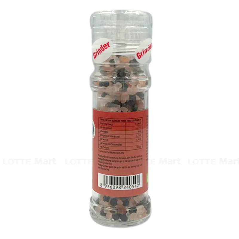 - 85% muối hồng Himalaya, 15% tiêu đen tiệt trùng.