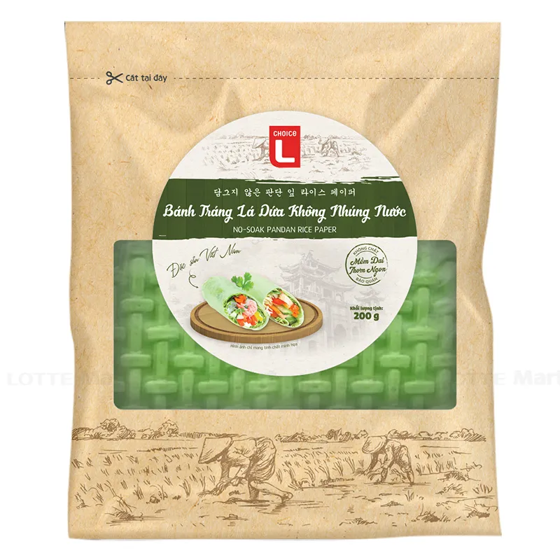 - Bánh Tráng Dẻo Lá Dứa Choice L Gói 200G là loại đặc sản Việt Nam rất gần gũi với hầu hết mọi người, là món ăn, nguyên liệu không thể thiếu của người dân nơi đây trong các dịp lễ tết. Với đặc điểm mỏng, dẻo dai, thơm mùi lá dứa tự nhiên, lại tiện lợi không cần nhúng qua nước, bánh tráng Choice L dễ dàng chinh phục được nhiều thực khách.