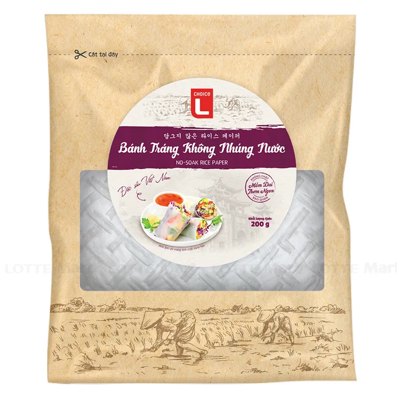 - Bánh Tráng Không Nhúng Nước Choice L Gói 200G là loại đặc sản Việt Nam rất gần gũi với hầu hết mọi người, là món ăn, nguyên liệu không thể thiếu của người dân nơi đây trong các dịp lễ tết. Với đặc điểm mỏng, dẻo dai tự nhiên, tiện lợi không cần nhúng qua nước, bánh tráng Choice L dễ dàng chinh phục được nhiều thực khách.