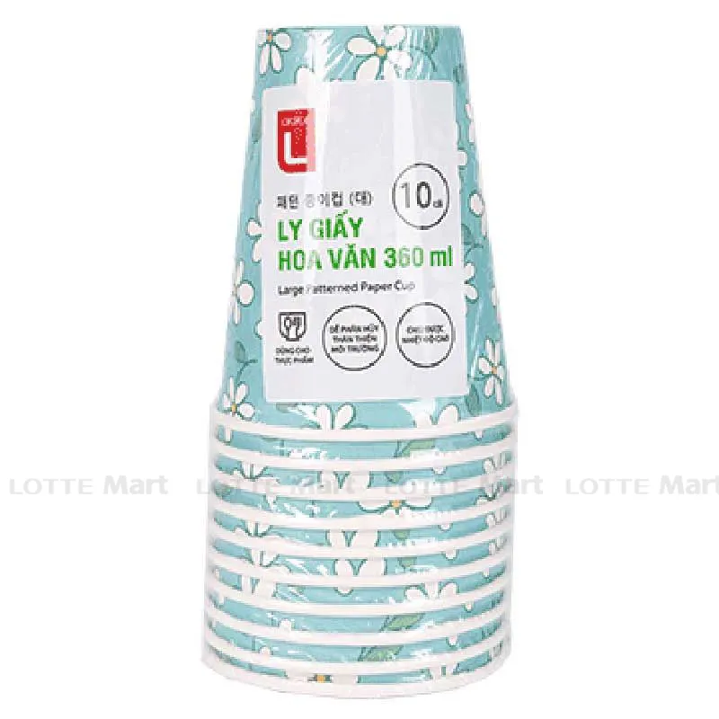 Ly Giấy Choice L Họa Tiết Hoa Văn Dùng Một Lần 360ml Lốc 10 Cái