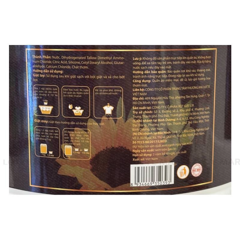 - Nước xả được sản xuất với các thành phần an toàn với làn da, với công thức vượt trội lưu giữ mùi hương bền lâu, nước xả giúp cho quần áo của bạn luôn thơm ngát suốt ngày dài.
