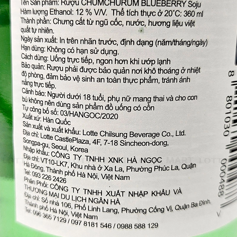 Rượu Soju Chum-Churum Vị Việt Quất 12% ABV Chai 360ml