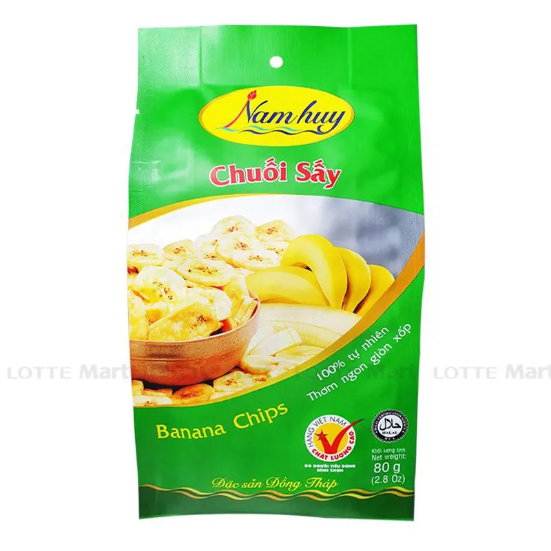 Chuối được sấy giòn - sử dụng nhiệt độ cao làm bốc hơi lượng nước có trong sản phẩm, vẫn giữ được độ ngọt của chúng. Chuối sấy Nam Huy gói 80g ăn giòn giòn, vui miệng, thích hợp ăn vặt và xem phim, nghe nhạc. Trái cây sấy Nam Huy chất lượng, vệ sinh được nhiều người tin dùng.