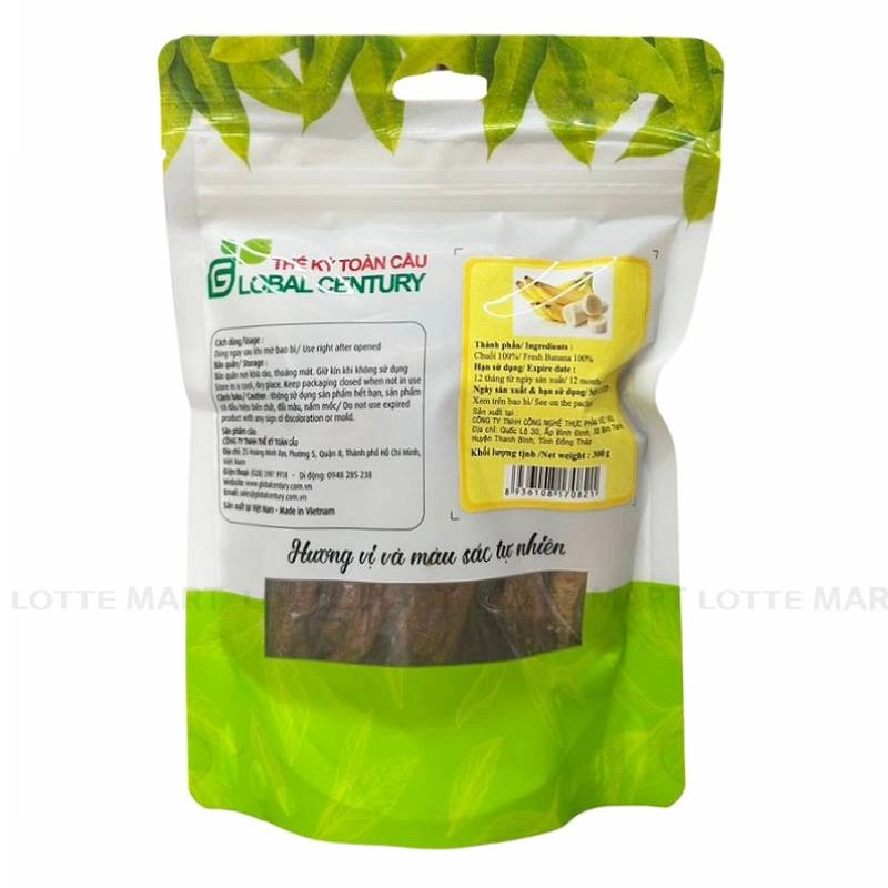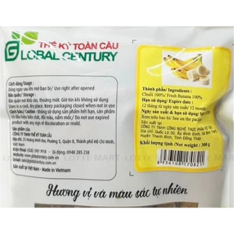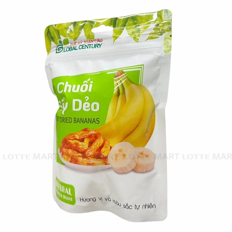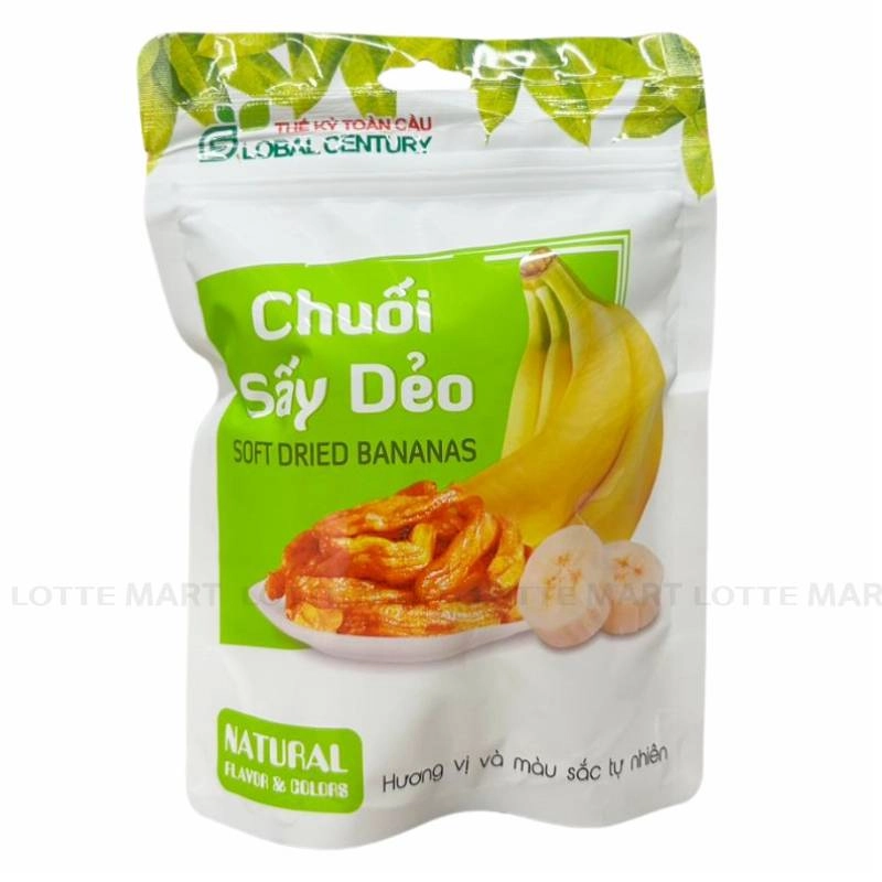 - Chuối Sấy Dẻo Global Century được chế biến biến và sản xuất từ nguyên liệu chuối tươi ngon, từng quả chuối được chọn lọc kỹ lượng thông qua quá trình sấy dẻo hiện đại giúp giữ được độ ngọt của chuối, các thành phần dinh dưỡng trong chuối cũng không bị hao hụt quá nhiều.