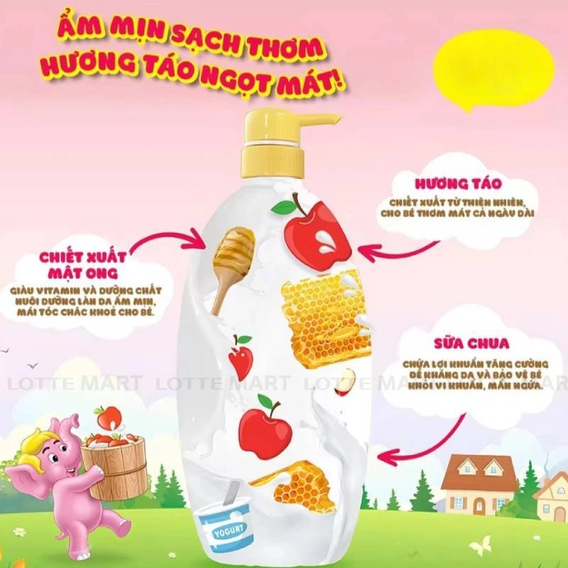 - Sữa tắm với chiết xuất từ mật ong, sữa chua và công thức đặc biệt có Fruito E + làm sạch hiệu quả, cho làn da và mái tóc của bé mềm mại và khỏe mạnh.