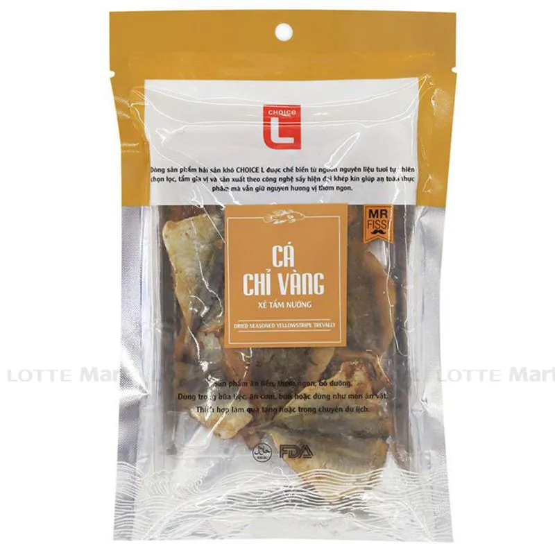 Cá Chỉ Vàng Xé Tẩm Nướng Choice L được chế biến từ nguồn nguyên liệu tươi tự nhiên chọn lọc, tẩm gia vị và sản xuất theo công nghệ sấy hiện đại khép kín giúp an toàn thực phẩm mà vẫn giữ nguyên hương vị thơm ngon.