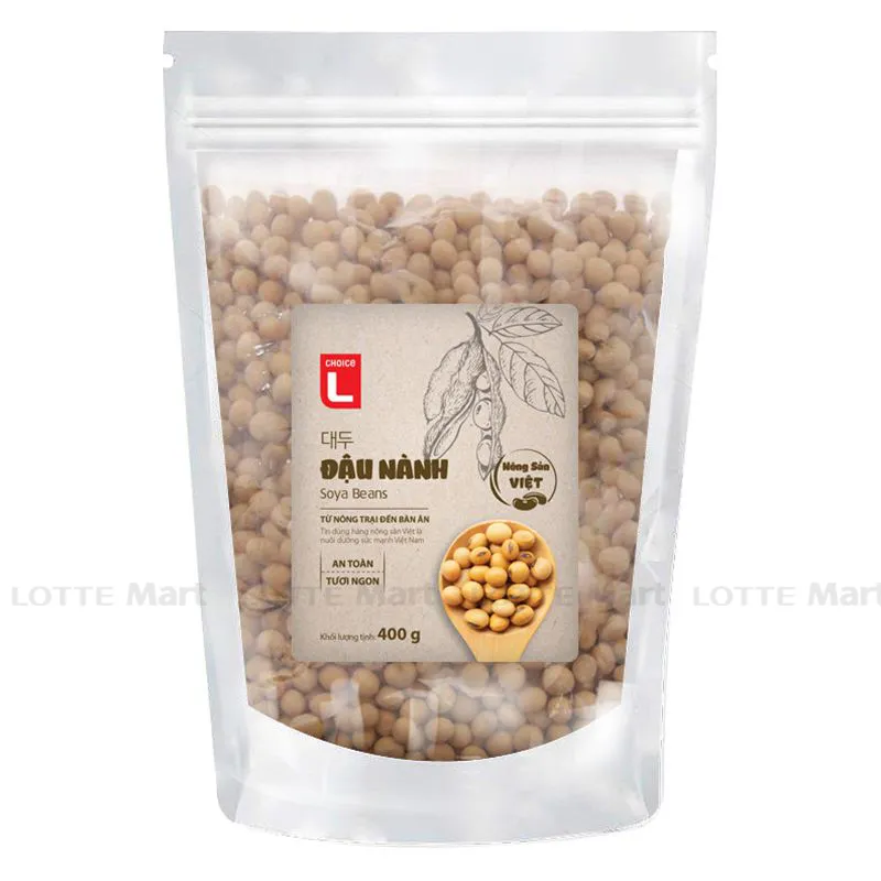 Đậu nành Choice L có thành phần 100% hạt đậu nguyên chất, giữ nguyên được chất dinh dưỡng, hạt đậu đồng đều và an toàn cho sức khỏe người tiêu dùng. Hoàn toàn tự nhiên, giàu chất dinh dưỡng. Không chất bảo quản. Đảm bảo vệ sinh thực phẩm. Thành phần: Đậu nành 100%.
