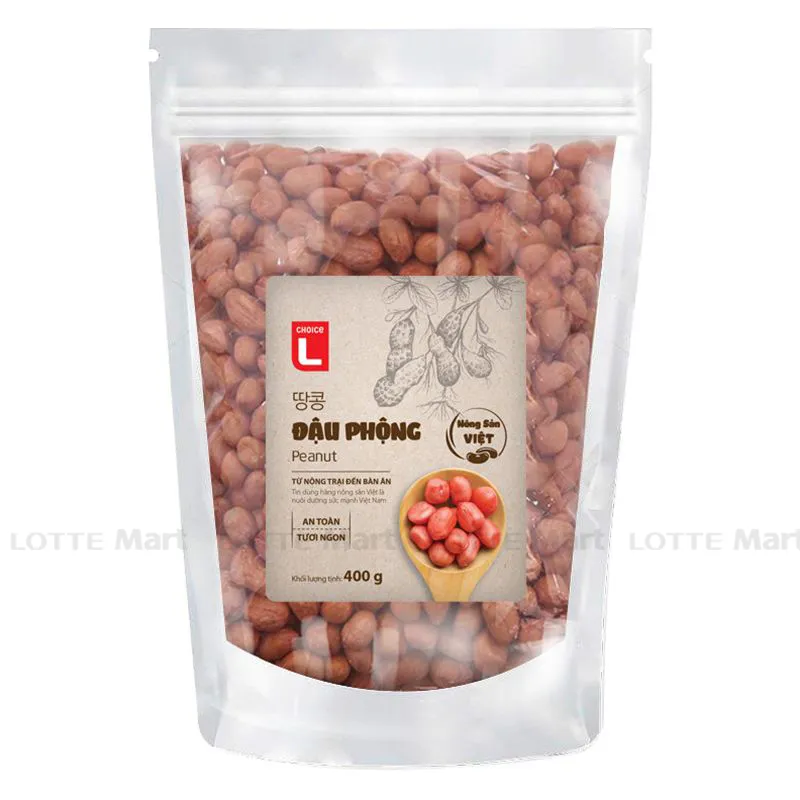 Đậu phộng Choice L có thành phần 100% hạt đậu nguyên chất, giữ nguyên được chất dinh dưỡng, hạt đậu đồng đều và an toàn cho sức khỏe người tiêu dùng. Hoàn toàn tự nhiên, giàu chất dinh dưỡng. Không chất bảo quản. Đảm bảo vệ sinh thực phẩm. Hướng dẫn sử dụng: Có thể dùng để rang hoặc nấu xôi, chè,... Gợi ý món ngon: Đậu phộng rang tỏi ớt, xôi đậu phộng, bơ đậu phộng…Bảo quản nơi khô ráo thoáng mát, sử dụng trong vòng 7 ngày sau khi mở bao bì. Nơi sản xuất: Việt Nam.