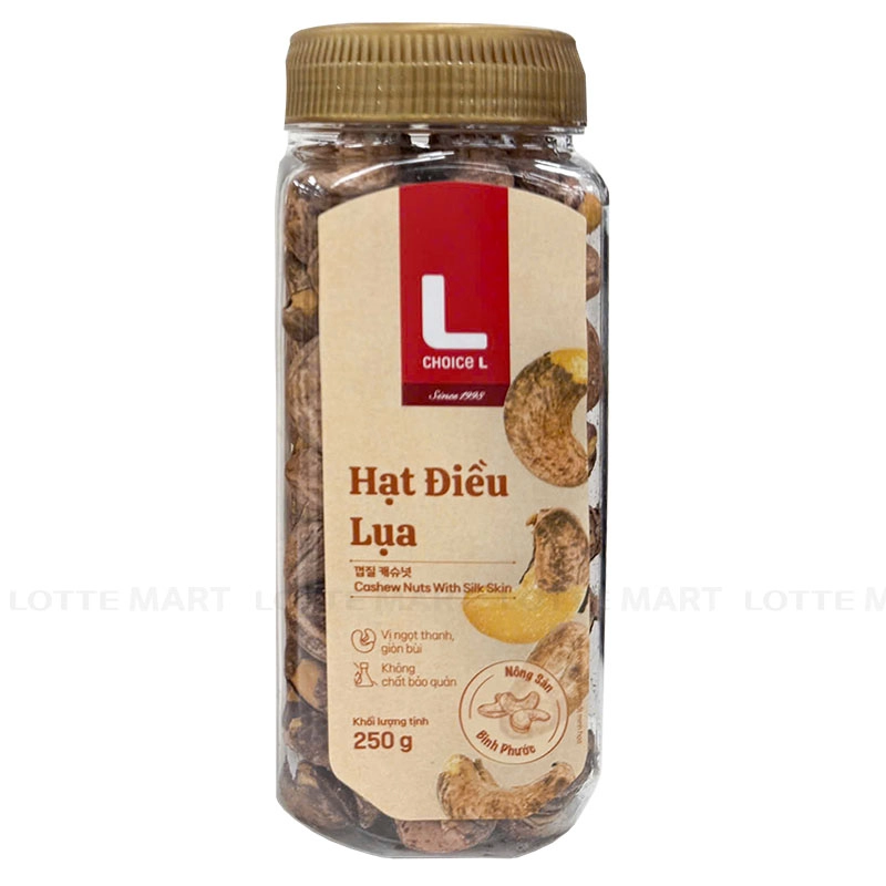 Hạt Điều Lụa Choice L Hộp 250g được chế biến từ hạt điều đã được tuyển chọn kỹ càng rang lên cùng muối tạo nên hương vị thơm ngon, béo ngậy khiến bạn thích mê. Ngoài ra sản phẩm còn được yêu thích bởi các đặc điểm nổi bật sau: