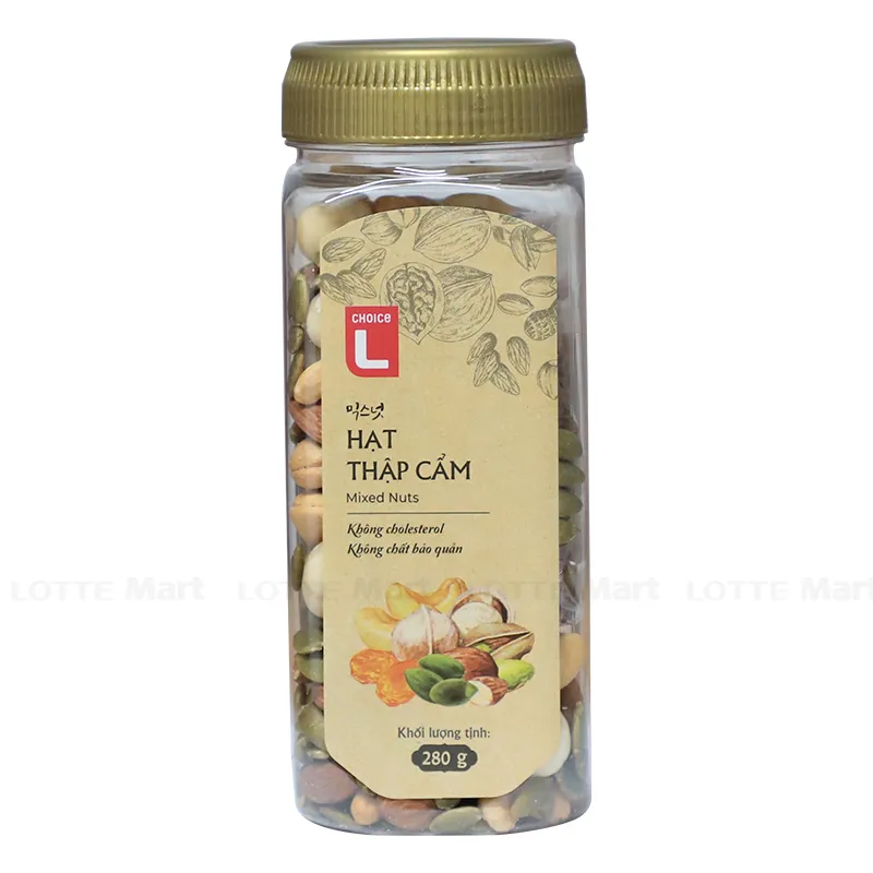 Hạt Thập Cẩm Choice L Hộp 280g bao gồm các loại hạt thơm ngon hấp dẫn và có giá trị dinh dưỡng cao như hạt điều, hạt hạnh nhân, hạt bí, nho khô, nhân macca... tất cả được rang lên thơm phức và giòn tan khiến bạn thích mê. Ngoài ra sản phẩm còn được yêu thích bởi các đặc điểm nổi bật sau: