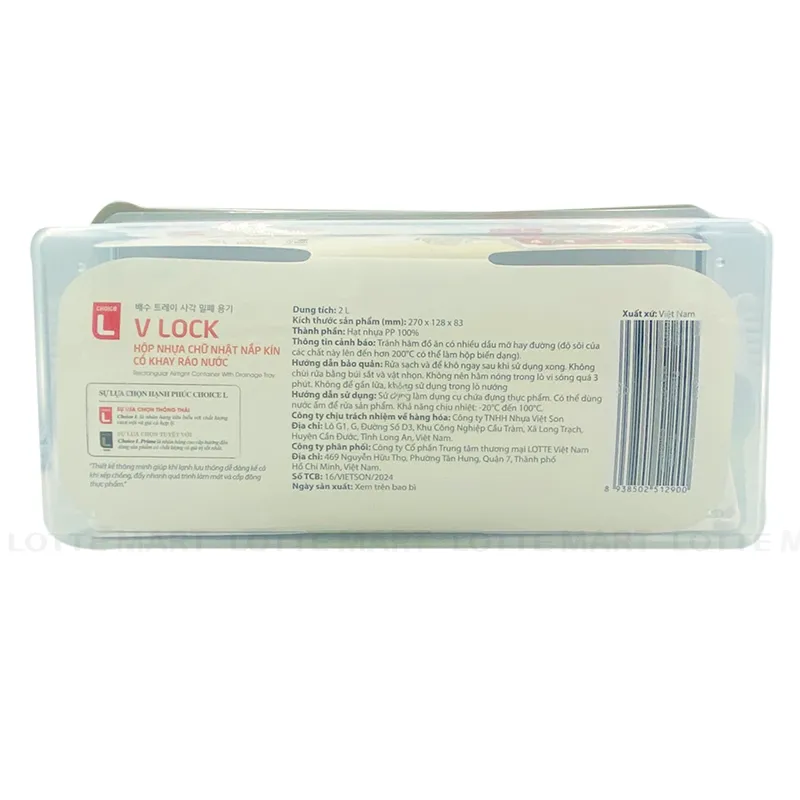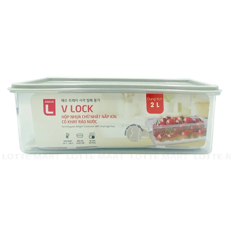Hộp Nhựa Thực Phẩm Chữ Nhật Nắp Kín Có Khay Ráo Nước V-Lock Choice L 2L