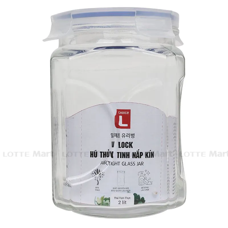 - Hũ Thủy Tinh Choice L Nắp Gài V-Lock 2000ml sử dụng chất liệu thủy tinh dày dặn, đảm bảo an toàn cho sức khỏe người sử dụng. Hũ thủy tinh nắp gài kín hơi, dễ dàng bảo quản thực phẩm một cách tiện lợi, lâu hơn.