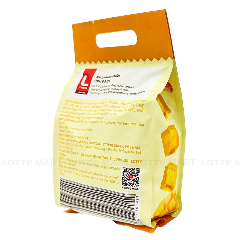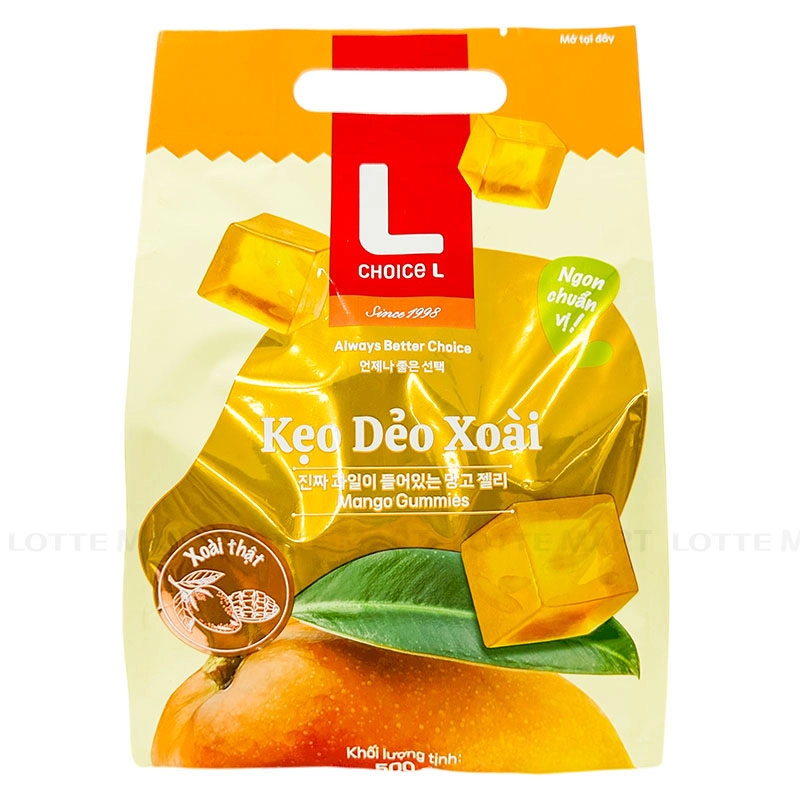 Kẹo Dẻo Xoài Choice L là loại kẹo dẻo mềm mịn kết hợp cùng những miếng xoài sấy dẻo thật bên trong, giữ trọn vị ngọt thanh và mùi thơm đặc trưng của quả xoài chín.