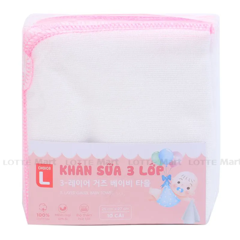 - Lốc 10 Cái Khăn Sữa 3 Lớp Sợi Dày Choice L 25 x 27cm là sự lựa chọn phù hợp dành cho các bé với sợi cotton mềm mại êm ái cùng độ thấm hút tốt giúp cho bé luôn sạch sẽ suốt cả ngày dài. Với các chất liệu an toàn sẽ giúp cho các phụ huynh yên tâm khi cho bé sử dụng.
