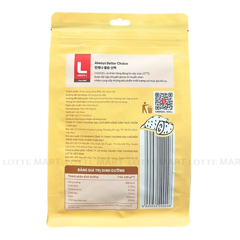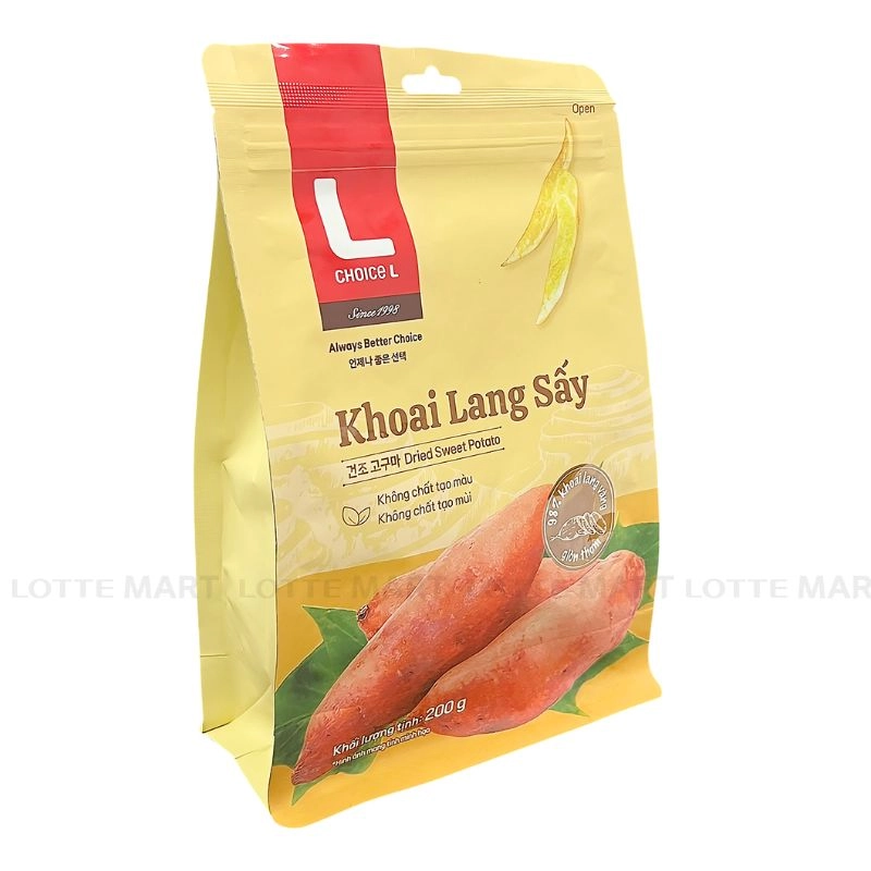 Khoai lang sấy Choice L được chế biến từ những nguyên liệu tươi ngon với công nghệ sản xuất hiện đại vẫn giữ nguyên màu sắc và mùi vị đặc trưng của khoai lang. Sản phẩm có hương vị thơm ngon, hấp dẫn màu sắc tươi ngon sẽ dễ dàng đánh thức vị giác của bất kì ai.