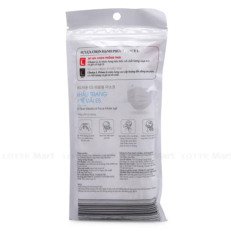 Khẩu Trang Y Tế Choice L Vải ES Lọc Bụi Kháng Khuẩn Vượt Trội Túi 10 Cái
