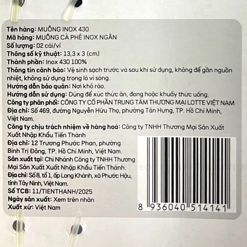 Lô 2 Muỗng Cà Phê Inox Ngắn Choice L 13.3cm