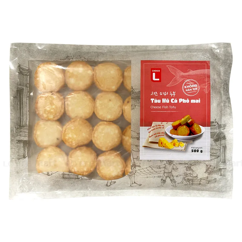 - Tàu Hủ Cá Phô Mai Choice L Gói 500G là một loại viên thả lẩu được dùng tại các nhà hàng, làm từ thịt cá tươi xay nhuyễn, có dạng hình tròn, bên trong được xen vào những miếng phô mai nhỏ li ti. Cảm giác mềm mịn của đậu hủ và dai thơm của thịt cá khi vừa cắn vào viên đậu hủ kết hợp thêm chút beo béo của phô mai chắc chắn sẽ khiến bạn tan chảy ngay lập tức.
