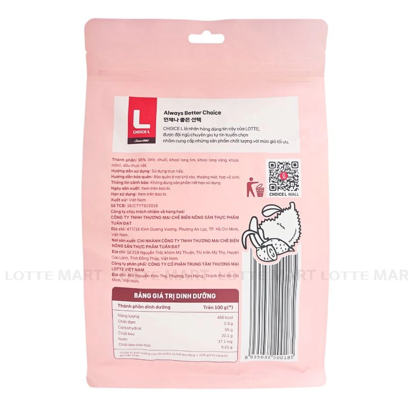 Trái Cây Sấy Tổng Hợp Choice L được chế biến từ những nguyên liệu tươi ngon với công nghệ sản xuất hiện đại vẫn giữ nguyên màu sắc và mùi vị đặc trưng của các loại trái cây. Sản phẩm có hương vị thơm ngon, hấp dẫn màu sắc tươi ngon sẽ dễ dàng đánh thức vị giác của bất kì ai.