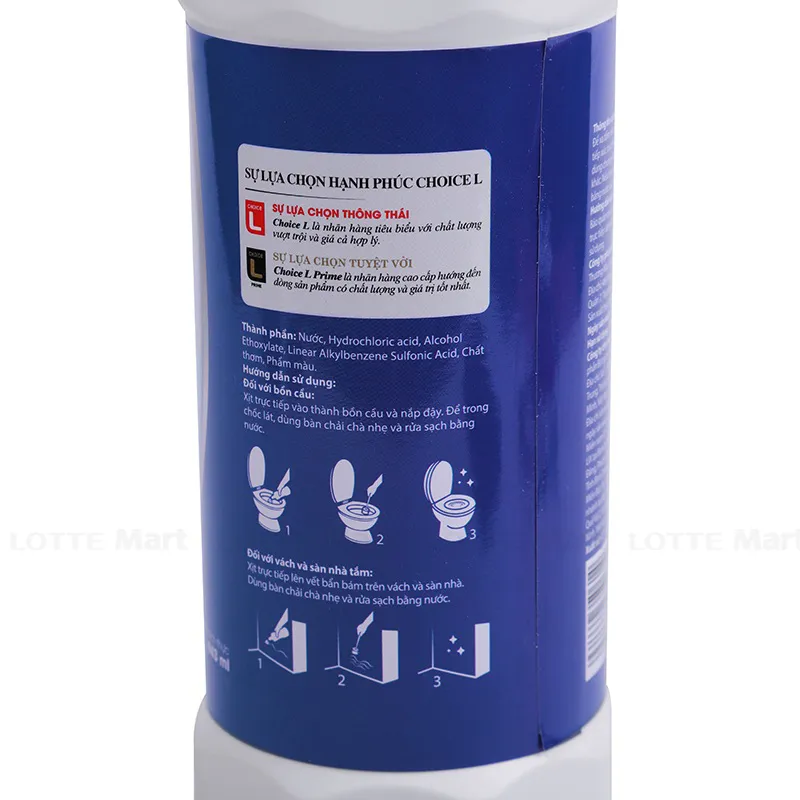 - Nước Tẩy Bồn Cầu & Nhà Tắm Choice L với công thức tẩy rửa mạnh, nhanh chóng làm sạch vết bẩn lâu ngày, ố vàng, diệt trùng và khử mùi hôi, giúp bồn cầu luôn sạch bóng.