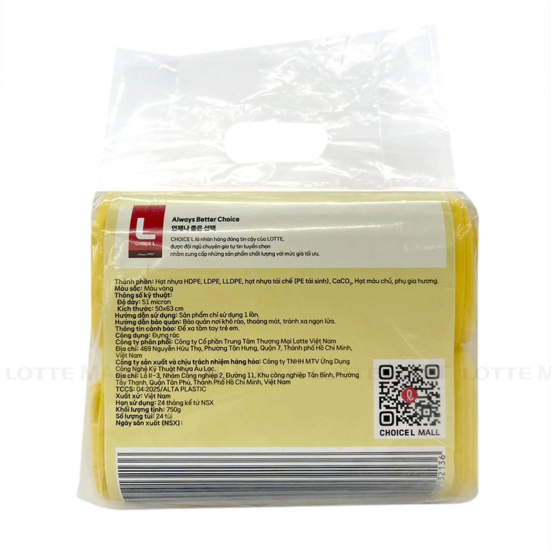 Túi Rác Màu Có Quai Choice L Hương Chanh được làm từ bao bì nhựa thân thiện môi trường, có độ dẻo dai và chắc chắn, không lo rách hay rỉ nước.