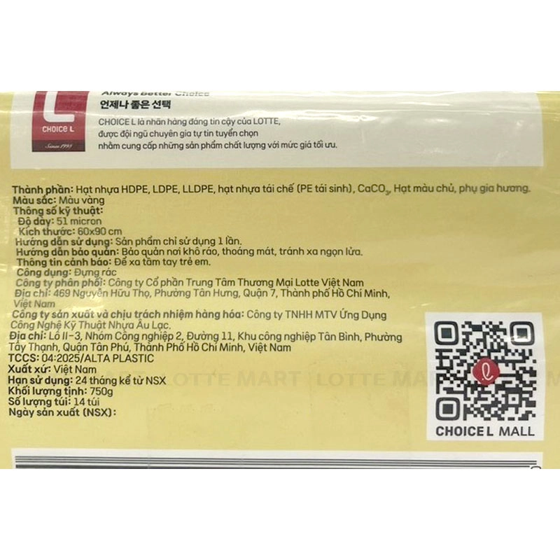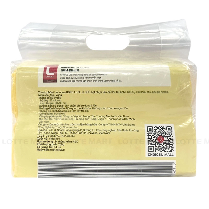 Túi Rác Màu Có Quai Choice L Hương Chanh được làm từ bao bì nhựa thân thiện môi trường, có độ dẻo dai và chắc chắn, không lo rách hay rỉ nước.