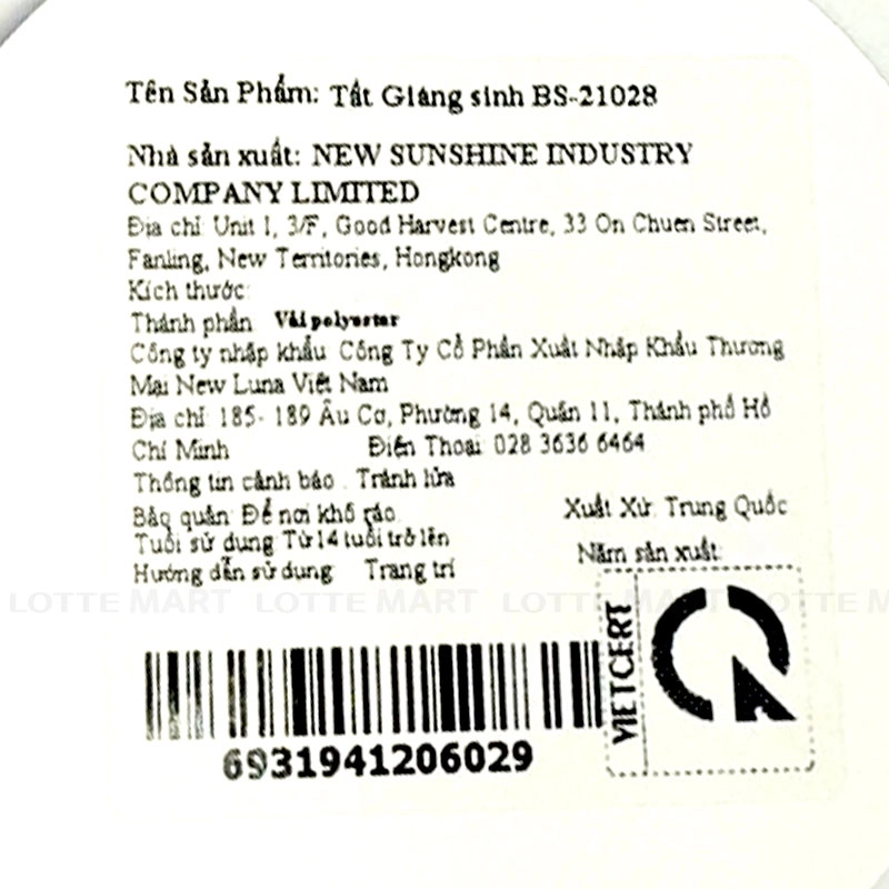- Tất Giáng Sinh BS-21028 được làm từ vải polyester mềm mại, bền đẹp, mang lại cảm giác nhẹ nhàng khi treo hoặc trang trí.