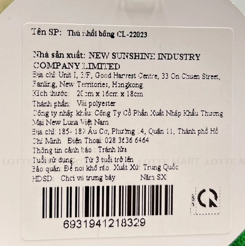 - Sản phẩm với lớp bông nhồi chất lượng cao, mang lại cảm giác êm ái khi ôm và chơi đùa.