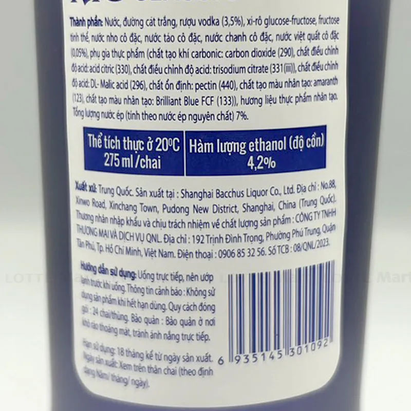 - Cocktail Rio Blueberry Brandy 4.2% ABV Chai 275Ml nồng độ cồn là 4.2%, có vị dịu nhẹ, ít gây cảm giác say và cũng rất tốt cho sức khỏe. Hình thức sang trọng có thể dùng làm quà tặng bạn bè hay người thân. Với nguồn vitamin A dồi dào trong Blueberry giúp mắt cải thiện, tăng cường thị lực, đồng thời giúp mắt thích ứng với những thay đổi của ánh sáng.