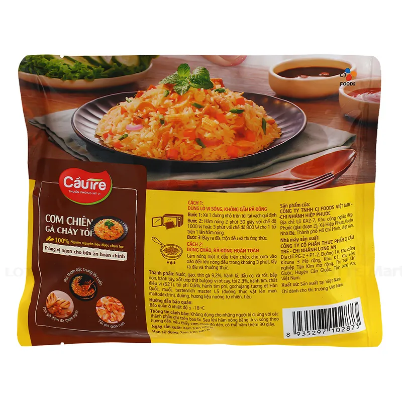 Cơm Chiên Gà Cháy Tỏi CJ Foods Gói 210g thơm ngon, dinh dưỡng lại vô cùng đậm đà gia vị. Cơm chiên gà cháy tỏi được làm từ những nguyên liệu sạch, tươi ngon. Thực phẩm chế biến sẵn luôn mang chất lượng, an toàn, tạo cho người dùng cảm giác ngon miệng, kích thích vị giác. Sản phẩm còn được yêu thích và tin dùng bởi những ưu điểm sau: