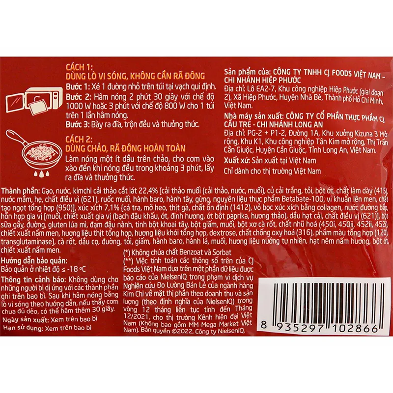 Cơm Chiên Kimchi Và Xúc Xích CJ Foods Gói 210g