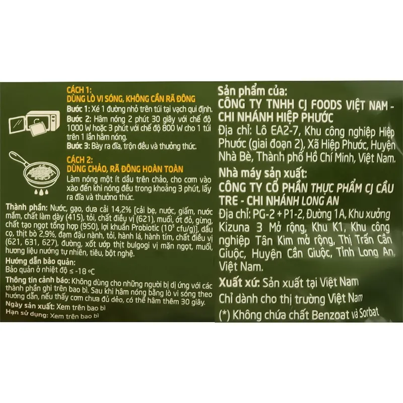 Cơm Rang Dưa Bò CJ Foods Gói 210g