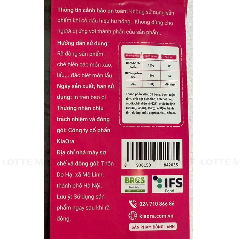 Combo Thịt Và Viên Thả Lẩu Kiaora 500G (EA)