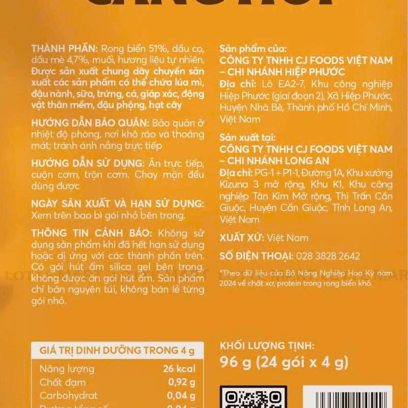 Tên công ty: CONG TY TNHH CJ FOODS VIET NAM-CHI NHANH HIEP PHUOC
