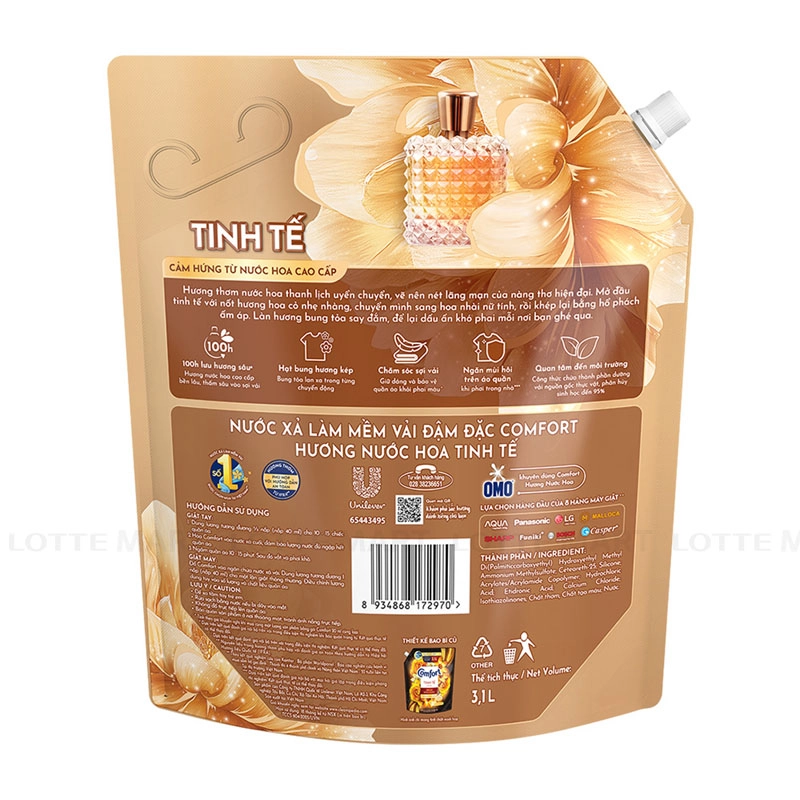 Nước Xả Vải Comfort Hương Nước Hoa Thiên Nhiên Tinh Tế Túi 3.1L