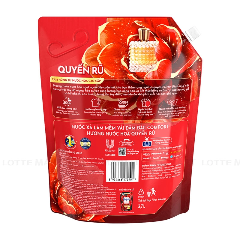 - Nước Xả Vải Comfort Hương Nước Hoa Quyến Rũ với công thức Chăm Sóc Chuyên Sâu Ultra Care thấm sâu vào từng sợi vải, giúp bảo vệ độ bền và giữ áo quần luôn tươi màu.
