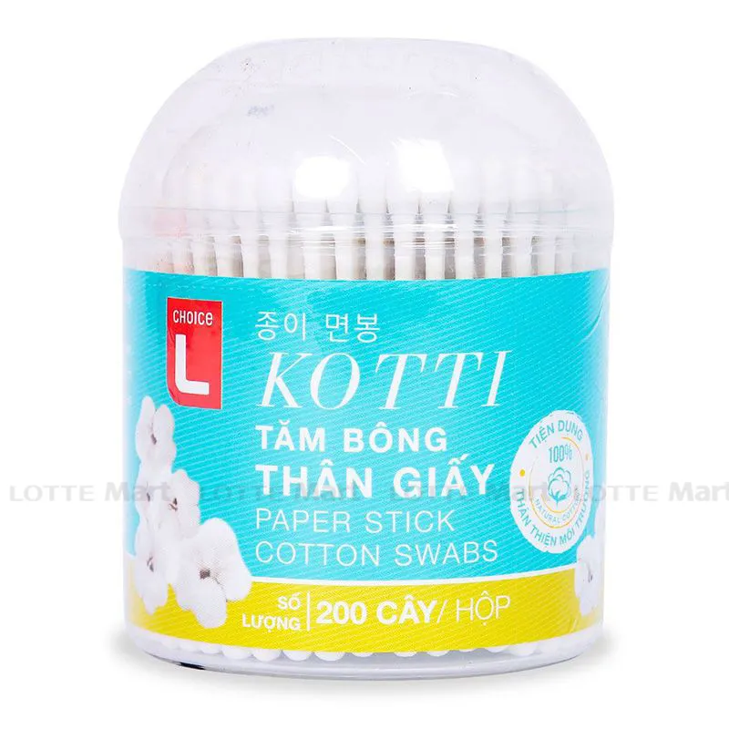 Tăm Bông Choice L Thân Giấy Hộp Tròn 200 Que